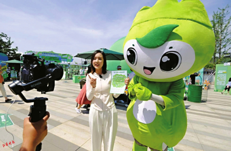 開幕日當(dāng)天正值兒童節(jié),太原植物園里有很多小朋友和爸爸媽媽一起來游玩。剛進(jìn)植物園大門,孩子們就被眼前的巨型環(huán)創(chuàng)雕塑吸引住了。在綠色的“‘碳’索無限·綠色生活節(jié)”上,山西省四大旗艦物種首次組團(tuán)亮相,向大家展示廢舊物品的可持續(xù)循環(huán)腦洞,路過的游客紛紛進(jìn)行創(chuàng)意合拍。很多小朋友在家長的陪伴下,領(lǐng)取偵“碳”地圖,在游戲中體驗(yàn)低碳生活的樂趣。