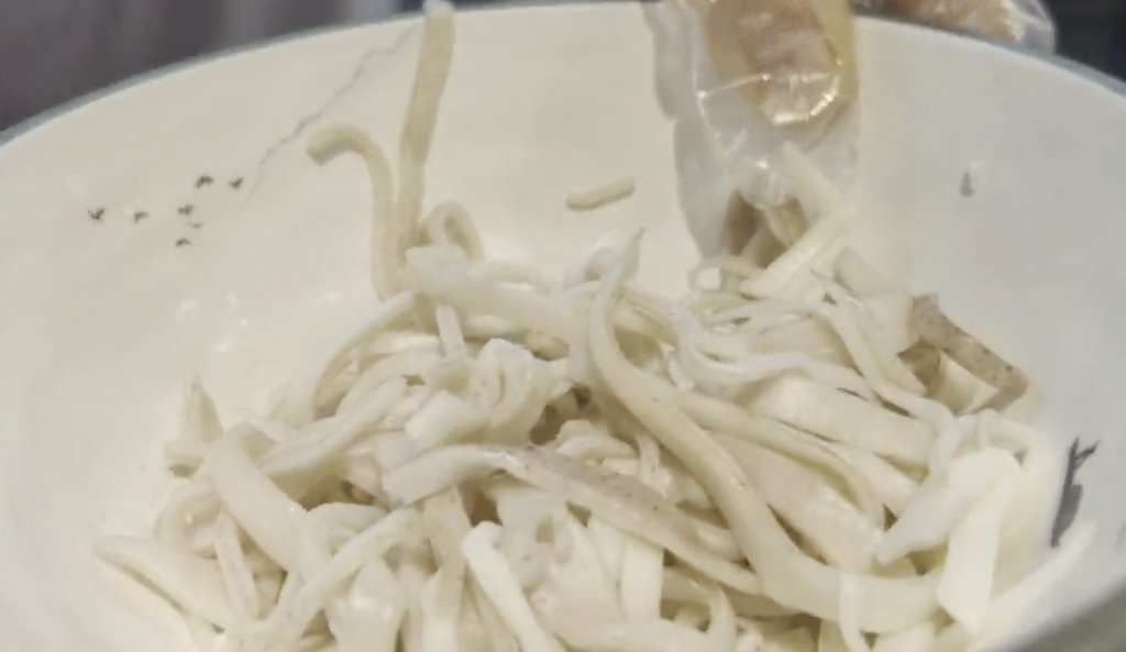夾心面是一種小麥面裹高粱面的山西獨有的面食,外表看起來是小麥面粉的白色,但內(nèi)里卻是高粱面的紅色。“在以前物資匱乏的時候,吃白面(小麥面)是日子過得比較好的象征,對于大部分普通人家而言,如果不是什么特殊的日子都是吃紅面(高粱面)。有的人家就把紅面裹在白面里,為了顯示自己家日子過得挺好,也算是一種苦中作樂吧?!鄙轿鲿^面食博物館文旅總監(jiān)李琨說?!暗浇裉欤呀?jīng)是‘倉廩實’,白面不是什么稀罕物了,大家吃這種面的目的已經(jīng)變成為了營養(yǎng)均衡,特意攝入一些粗糧了?!?/p>