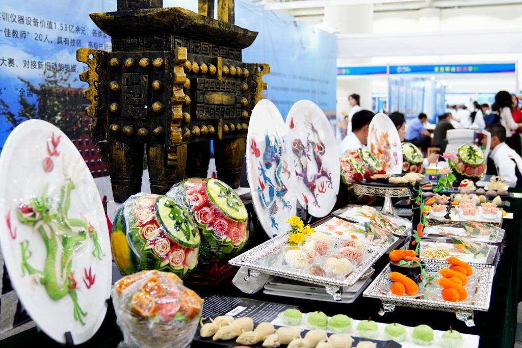 2024年5月11日,在濟(jì)南舜耕國際會展中心,濟(jì)南市技師學(xué)院展示師生創(chuàng)作的作品。新華社記者 郭緒雷 攝