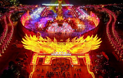 “今年的豫園燈會延續(xù)了對《山海經(jīng)》的挖掘,也打造了展現(xiàn)蛇年春節(jié)主題的‘天地人和,金蛇獻瑞’燈組,進一步展現(xiàn)中華優(yōu)秀傳統(tǒng)文化魅力。”豫園股份首席文化官陳佳說。