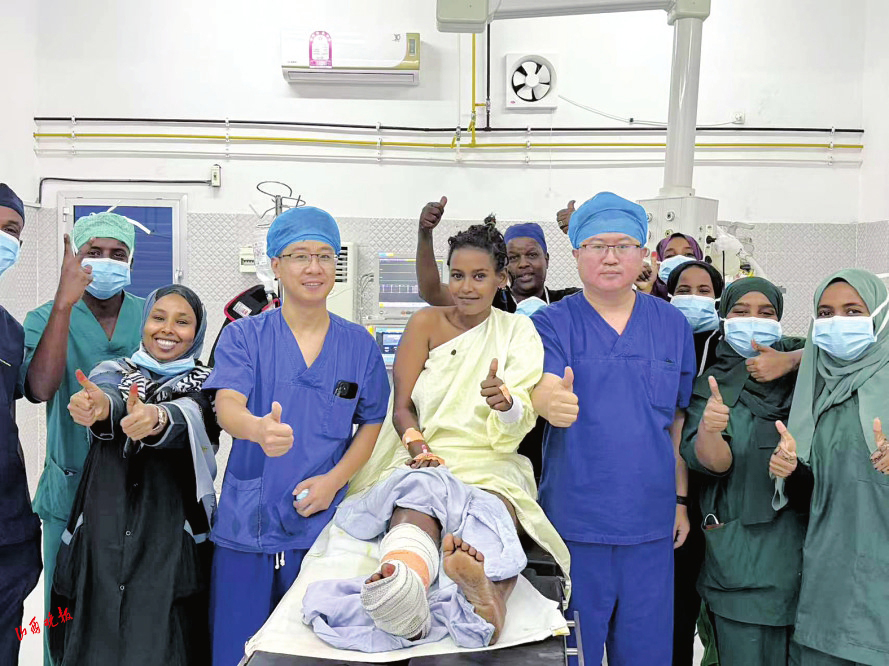 在麻醉的作用下,患者全程清醒、無痛。骨科醫(yī)生楊青則憑借熟練的手術(shù)操作,成功為她實(shí)施了創(chuàng)面皮膚軟組織清創(chuàng)術(shù)?;颊咝g(shù)后恢復(fù)良好,對(duì)醫(yī)療隊(duì)的精湛醫(yī)術(shù)和無私奉獻(xiàn)表示由衷的感謝。她表示,從未想過在吉布提能夠接受到如此卓越非凡的醫(yī)療服務(wù),感謝中國醫(yī)療隊(duì)的到來,為自己帶來了希望。