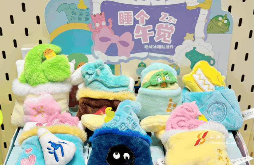 除“睡個午覺”系列外,山西博物院“逛吃逛吃”毛絨掛件、“檐之?有物”古建筑毛絨玩具、其樂“絨絨”噗噗捏捏樂毛絨掛件、“卣”點(diǎn)意思毛絨筆記本,以及暑期爆款文創(chuàng)發(fā)飾等新品,造型生動、實用美觀,以“輕量化”形態(tài)讓觀眾近距離感受山西歷史文化魅力。