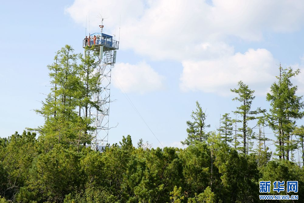 孫華和李穎在瞭望塔上觀察(拍攝于8月12日)。新華網(wǎng)石毅 攝