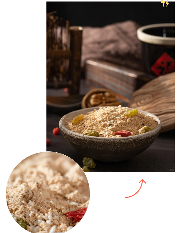 這款小吃由五谷雜糧粉和堅果炒制而成,加入開水即可飲用,無論是搭配油條還是咸菜,都別有一番風味。