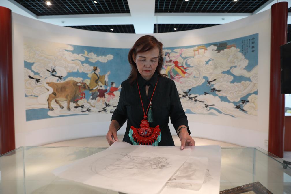 在和順,“刺繡”與“織女”亦有著巧妙的聯(lián)系。樸素的工作室內,省級非物質文化遺產(chǎn)和順刺繡代表性傳承人范素萍正以針線“編織”牛郎織女的故事。金絲銀線在她的指尖流轉,繡出鵲橋相會的動人畫面。“和順女子向來以刺繡為榮,就像傳說中巧手的織女。”范素萍笑著說道。