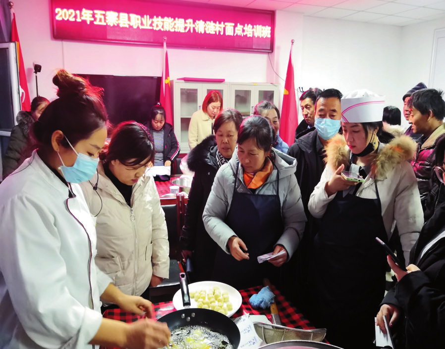 近日,市新華書店駐五寨縣前所鄉(xiāng)清漣村工作隊(duì)與村兩委班子聚焦鄉(xiāng)村振興實(shí)際需求,想村民所想,急村民所急,為村里有勞動(dòng)能力無(wú)職業(yè)技能的群體聘請(qǐng)專業(yè)面點(diǎn)師,對(duì)他們進(jìn)行面點(diǎn)技能培訓(xùn)。培訓(xùn)采取“理論+實(shí)訓(xùn)”的模式,有利于提高農(nóng)村勞動(dòng)者素質(zhì),培育結(jié)構(gòu)合理、技藝精湛、素質(zhì)優(yōu)良的技能人才,引導(dǎo)廣大村民投身到美麗鄉(xiāng)村建設(shè)中來(lái)。(記者 張林泉 攝影報(bào)道)