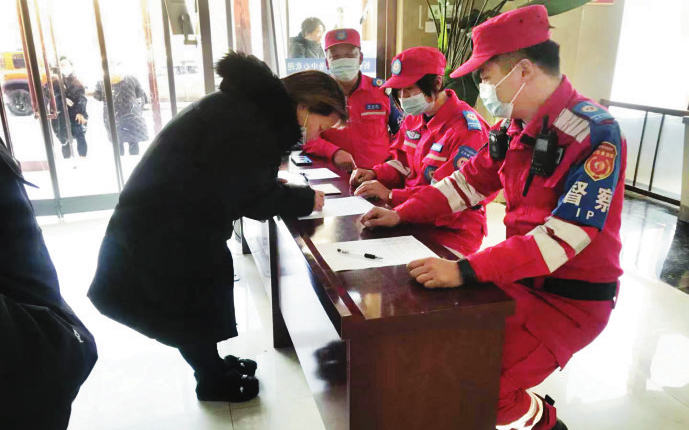 歲末年初,忻府區(qū)政務(wù)服務(wù)中心業(yè)務(wù)量大幅增加,前來辦事的群眾也在增多。為確保疫情防控與審批服務(wù)統(tǒng)籌兼顧,中華志愿者協(xié)會(huì)應(yīng)急委忻州服務(wù)隊(duì)隊(duì)員們身穿紅馬甲,堅(jiān)守政務(wù)大廳防控一線、政務(wù)服務(wù)前沿,為辦理業(yè)務(wù)的群眾提供窗口指引、秩序維護(hù)、咨詢答疑、文明督導(dǎo)等服務(wù)。