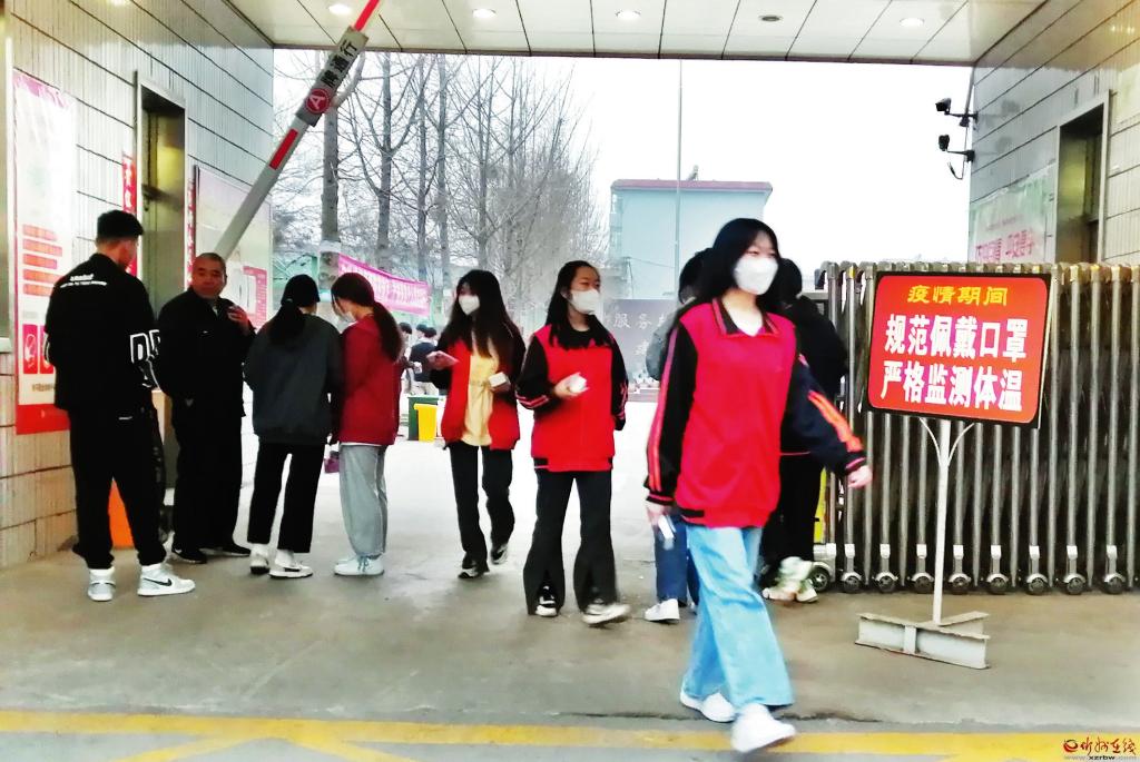 規(guī)范佩戴口罩,嚴(yán)格監(jiān)測(cè)體溫。忻州市高級(jí)技術(shù)學(xué)校門口豎著一塊醒目的牌子,溫馨提示學(xué)校師生要做好疫情防護(hù)。 (記者 李 濤攝