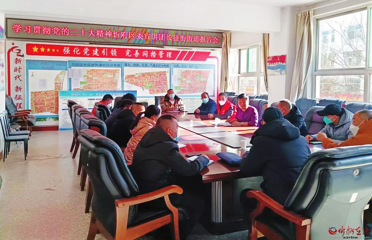 日前,忻府區(qū)委學(xué)習(xí)貫徹黨的二十大精神宣講團(tuán)第七工作組走進(jìn)長征街道宣講。所屬社區(qū)和村黨支部書記、機(jī)關(guān)干部參加會(huì)議。