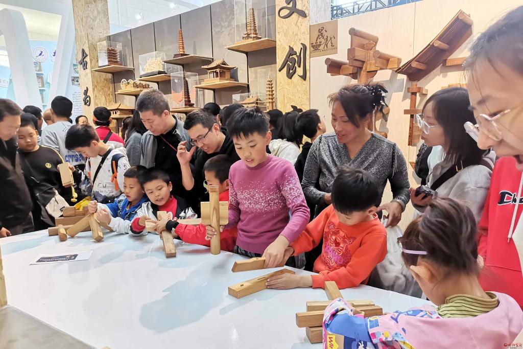 小朋友在展區(qū)體驗(yàn)榫卯連接。宮清華 攝