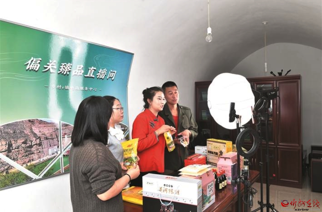 偏關(guān)鄉(xiāng)村e(cuò)鎮(zhèn)公共服務(wù)中心直播帶貨現(xiàn)場。本報(bào)記者 馮曉磊攝