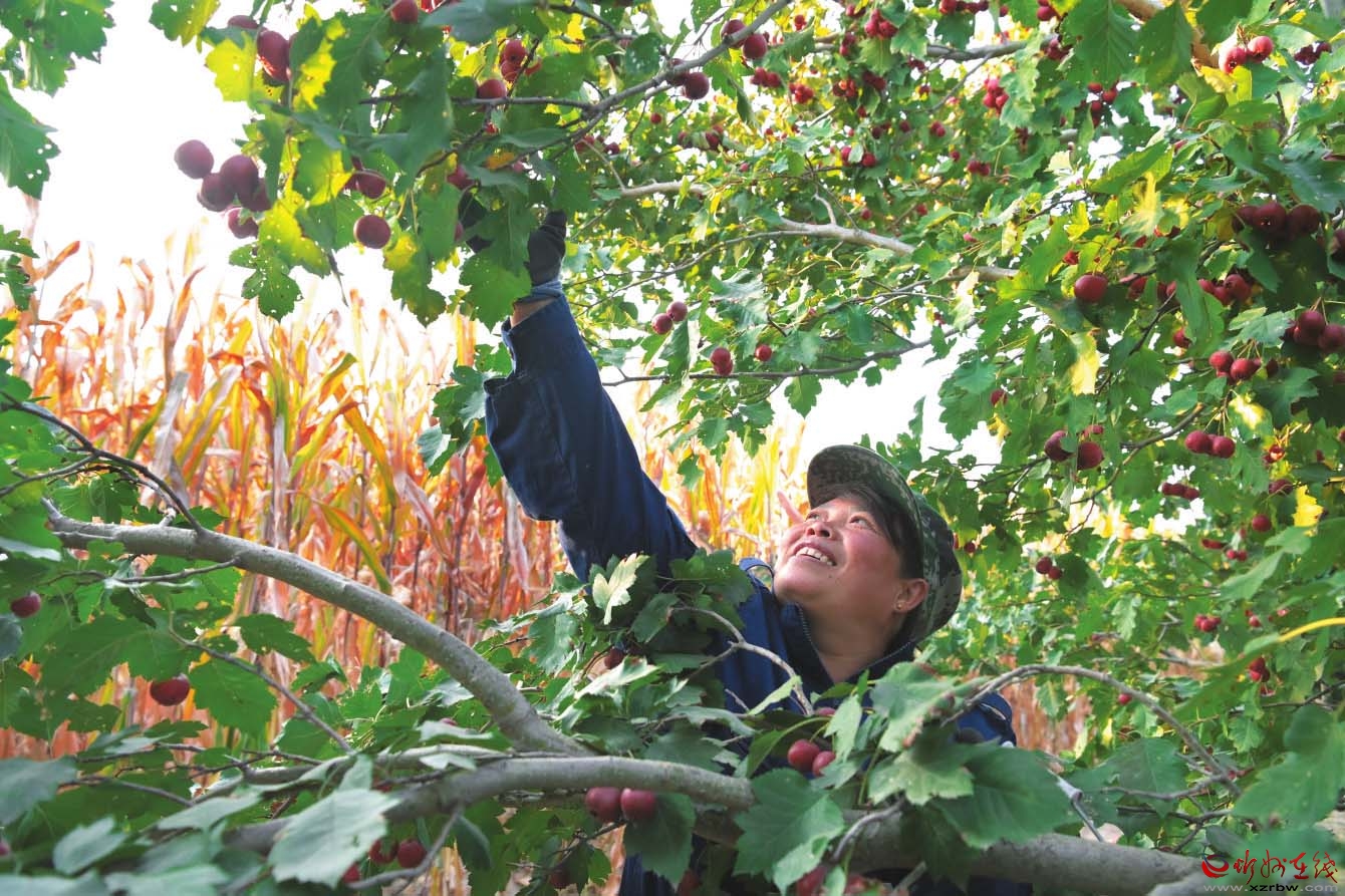 辛安村村民采摘成熟的山楂