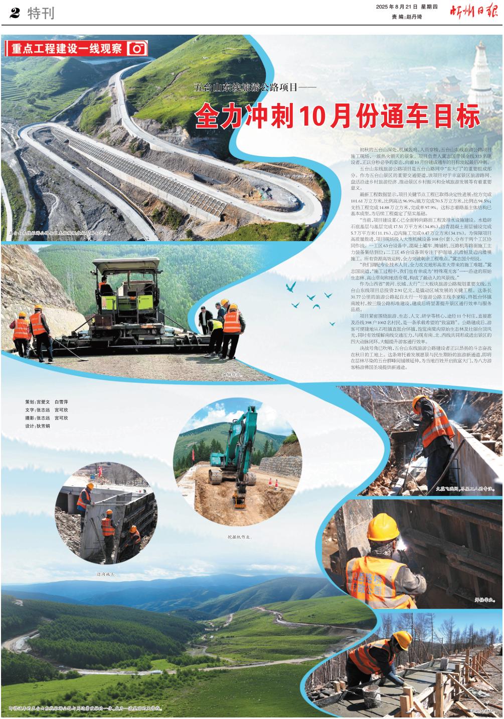 決戰(zhàn)號角已吹響,五臺山東線旅游公路建設(shè)者正以昂揚的斗志奮戰(zhàn)在秋日的工地上。這條寄托著發(fā)展愿景與民生期盼的旅游新通道,即將在層林盡染的五臺群峰間鋪展延伸,為當(dāng)?shù)匕傩臻_啟致富大門,為八方游客暢游佛國圣境提供新通途。