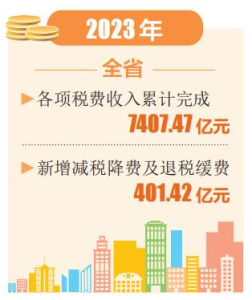 本報(bào)訊(記者任志霞)近日,記者從全省稅務(wù)工作會(huì)上獲悉,2023年全省各項(xiàng)稅費(fèi)收入累計(jì)完成7407.47億元,全省新增減稅降費(fèi)及退稅緩費(fèi)401.42億元。