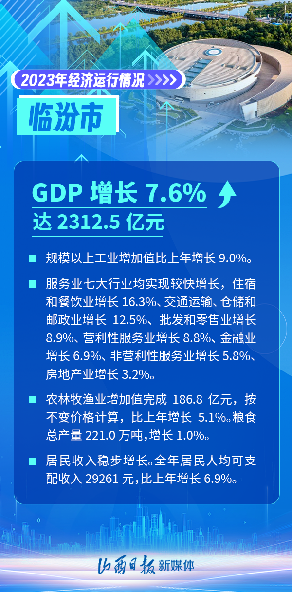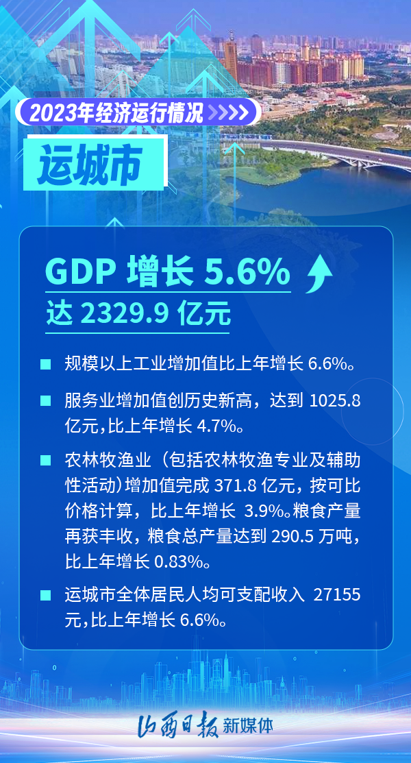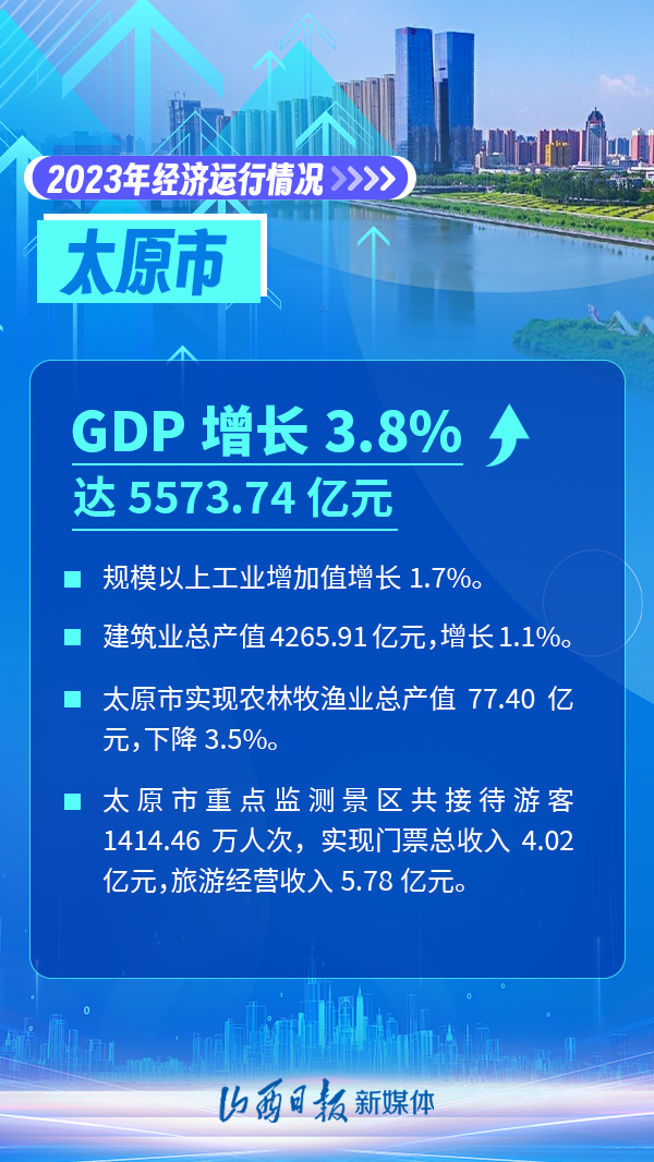 近日,山西省統(tǒng)計局公布了山西省內(nèi)11個市2023年經(jīng)濟數(shù)據(jù)。從經(jīng)濟總量看,2023年省會太原GDP為5573.74億元,位列各市第一位;從經(jīng)濟增速看,臨汾市GDP增速達到了7.6%,全省領(lǐng)跑。 一組海報,看山西11市2023年經(jīng)濟主要數(shù)據(jù)。