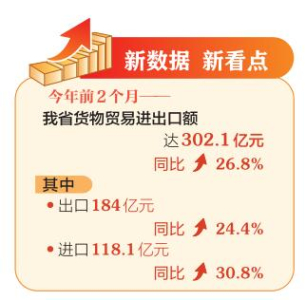 前2個(gè)月我省進(jìn)出口同比增長(zhǎng)26.8%