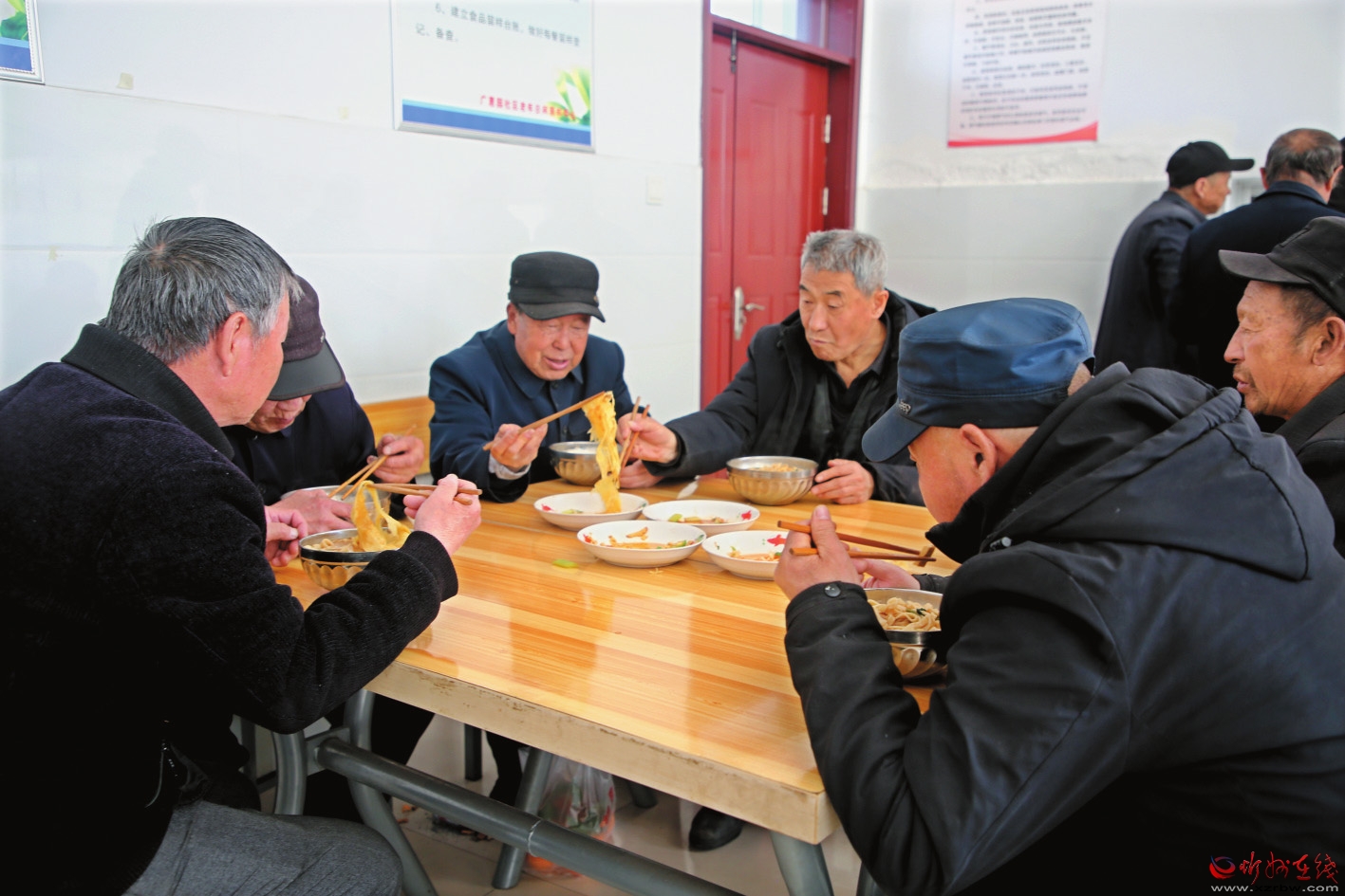 在岢嵐縣三井鎮(zhèn)康家會村,每天最熱鬧的地方就是老年人日間照料中心。老人們聚精會神對弈、三三兩兩聊天、共同圍桌吃飯,從早晨到傍晚,在這里享受快樂時光,同時還有幾名志愿者提供熱情服務。