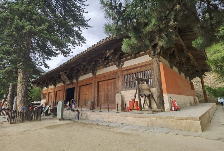 佛光寺,距離五臺(tái)山寺廟集中的臺(tái)懷鎮(zhèn)有四五十公里遠(yuǎn)。寺周圍東、南、北三面環(huán)山,只有西面低下而開闊,因此古寺因地勢而建,坐東朝西,高低層疊。
