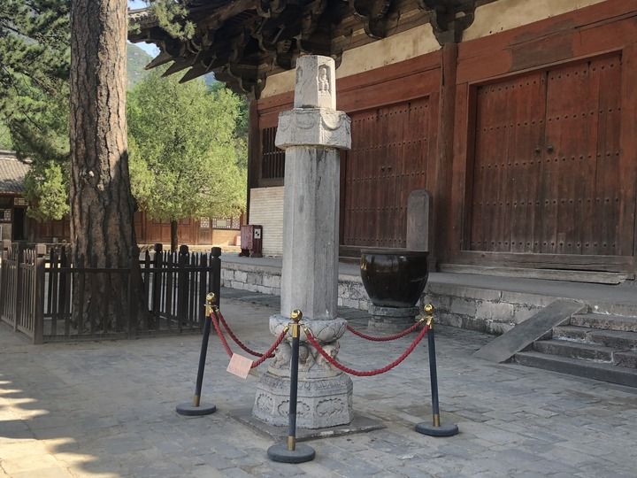 “徽因素來遠(yuǎn)視,獨(dú)見‘女弟子寧公遇’之名,深怕有誤,又詳細(xì)檢查階前經(jīng)幢上的姓名。幢上除有官職者外,果然也有‘女弟子寧公遇’者,稱為‘佛殿主’,名列在諸尼之前?!绷核汲烧J(rèn)為,佛殿主之名既然寫在梁上,又刻在經(jīng)幢上,則經(jīng)幢的建造應(yīng)當(dāng)是與殿同時(shí),或在殿完工的時(shí)候。而石經(jīng)幢帶有紀(jì)年為“唐大中十一年”,即公元857年。這樣,殿的年代就可以推測出了。