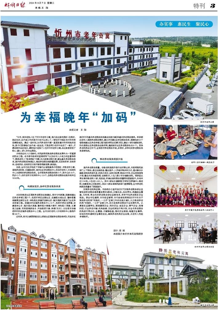 近年來,我市認真貫徹落實《山西省社區(qū)居家養(yǎng)老服務條例》,印發(fā)并實施《忻州市基本養(yǎng)老服務體系建設實施方案》和基本養(yǎng)老服務清單。積極順應老年人居家養(yǎng)老服務需求,建立并完善社區(qū)養(yǎng)老服務體系,圓滿完成19個省級城鎮(zhèn)社區(qū)養(yǎng)老幸福工程(省政府民生實事)項目,建設17家鄉(xiāng)鎮(zhèn)敬老院,優(yōu)化縣級社區(qū)養(yǎng)老服務設施布局,建成城市社區(qū)養(yǎng)老服務站點87個。取消養(yǎng)老機構設立許可,全面放開養(yǎng)老服務市場,多層次、多樣化的養(yǎng)老服務體系逐漸形成。