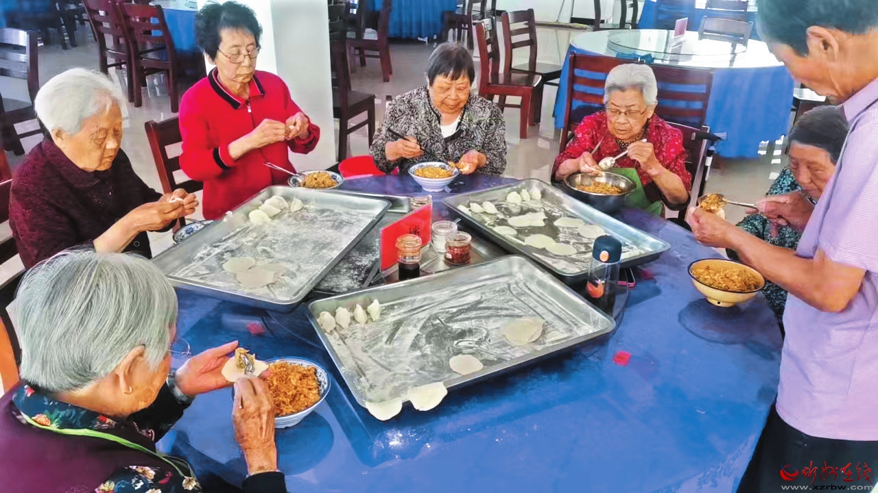 老年人其樂融融一起包餃子