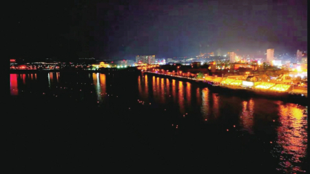 夕陽西下,皓月初升,在河曲縣城的西口古渡廣場到臨隩公園的黃河邊,早已是人流如織。寬闊的黃河橫臥眼前,河面平靜,在夜色的掩映下,宛如一塊墨玉鑲嵌在大地之上。隨著一聲爆竹響,河面上驟然亮起了飄動的燈火,一盞、二盞、三盞……不一會兒,五顏六色的河燈便搖搖曳曳隨波逐流,星星點點,如一條長龍浮游于水面。慢慢地,數(shù)不清的河燈疏疏密密地在大河上輕漾,猶如漫天星辰瀉入長河。