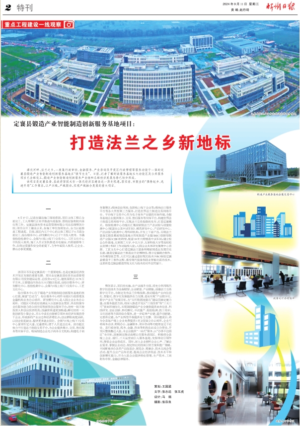 滹沱河畔、法蘭之鄉(xiāng),一座集行政審批、金融服務(wù)、產(chǎn)業(yè)咨詢及開發(fā)區(qū)行政管理等服務(wù)功能于一體的定襄縣鍛造產(chǎn)業(yè)智能制造創(chuàng)新服務(wù)基地正“拔節(jié)生長”。日前,記者了解到該服務(wù)基地五大功能區(qū)及公共服務(wù)項(xiàng)目已全部完工,鍛造產(chǎn)業(yè)智能制造創(chuàng)新服務(wù)產(chǎn)業(yè)鏈和總部經(jīng)濟(jì)發(fā)展態(tài)勢已初步形成。