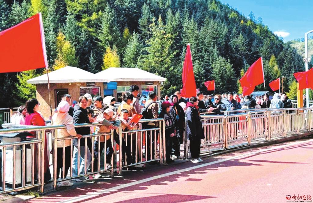 沉浸式體驗(yàn),讓景區(qū)的“國(guó)慶”更“喜慶”。在蘆芽山各個(gè)景點(diǎn),一面面五星紅旗在藍(lán)天白云下迎風(fēng)招展,電子屏、打卡墻、指示牌都新增了“國(guó)慶”元素,處處洋溢著歡樂(lè)祥和的節(jié)日氛圍,游客們紛紛拍照打卡,與國(guó)旗合影,用簡(jiǎn)單質(zhì)樸的方式向祖國(guó)告白。景區(qū)還注重山水資源與人文底蘊(yùn)相銜接,推出蘆芽山國(guó)潮風(fēng)、非遺漆扇體驗(yàn)活動(dòng),讓游客身著中國(guó)特色民族服飾,參與具有蘆芽山特色的漆扇制作。“第一次來(lái)寧武,第一次來(lái)蘆芽山景區(qū),感覺(jué)這里的景色非常美。我還制作了一把漆扇,景區(qū)還獎(jiǎng)勵(lì)了我一個(gè)小禮品?!眮?lái)自廣西桂林的游客唐女士手持剛剛制作完成的漆扇說(shuō)。