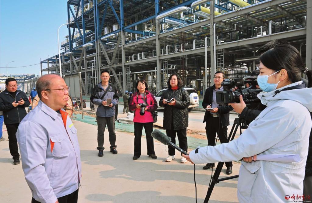 “省市媒體采風行”記者走進原平市同德科創(chuàng)PBAT一體化項目建設現(xiàn)場采訪。記者 馮曉磊攝