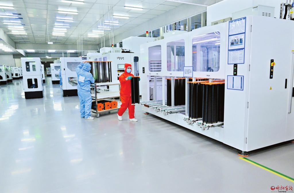 項(xiàng)目于2023年3月投產(chǎn)運(yùn)營。目前,2號廠房已實(shí)現(xiàn)滿產(chǎn),1號廠房設(shè)備安裝調(diào)試已近尾聲,即將投產(chǎn)。項(xiàng)目全面投產(chǎn)達(dá)效后,產(chǎn)能達(dá)到“50GW電池+50GW組件”,可實(shí)現(xiàn)年產(chǎn)值60億元,年上繳稅收3億元,提供就業(yè)崗位1400個。