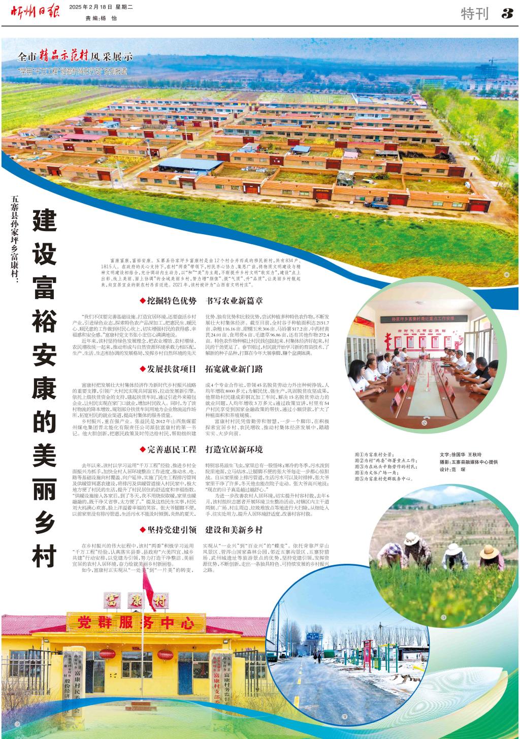 富康富康,富裕安康。五寨縣孫家坪鄉(xiāng)富康村是由12個(gè)村合并而成的移民新村,共有834戶、1815人。在政府的關(guān)心支持下,在村“兩委”帶領(lǐng)下,村民齊心協(xié)力、集思廣益,將物質(zhì)文明建設(shè)與精神文明建設(shè)相結(jié)合,充分調(diào)動(dòng)內(nèi)生動(dòng)力,以“和”“美”為主題,不斷提升鄉(xiāng)村文明“軟實(shí)力”,建設(shè)“點(diǎn)上出彩、線上美麗、面上協(xié)調(diào)”的全域美麗鄉(xiāng)村,努力增“顏值”、提“氣質(zhì)”、升“品質(zhì)”,讓美麗鄉(xiāng)村靚起來,向宜居宜業(yè)的新農(nóng)村昂首邁進(jìn)。2021年,該村被評(píng)為“山西省文明村莊”。