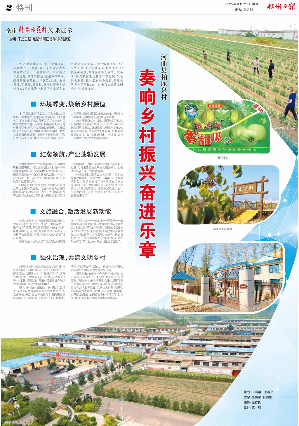 圍繞“生態(tài)、生產(chǎn)、生活”“三生”融合發(fā)展理念,以“西口古渡——柏鹿泉——羅圈堡——娘娘灘”各景點為主線,整合當?shù)刭Y源,引入景觀農(nóng)業(yè)、設施農(nóng)業(yè),開發(fā)農(nóng)特產(chǎn)品。柏鹿泉村正逐步成為休閑農(nóng)業(yè)旅游基地,推動當?shù)亟?jīng)濟向規(guī)?;?、主體化、休閑化方向發(fā)展。2019年,柏鹿泉村榮獲“山西省旅游扶貧示范村”稱號,2020年被評為“第二批AAA級鄉(xiāng)村旅游示范村”。