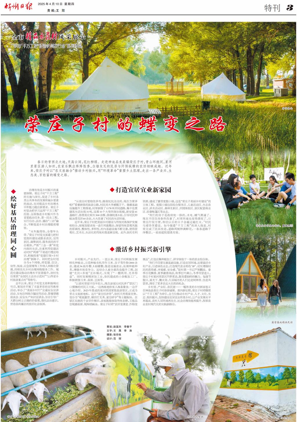 春日的晉西北大地,天高云闊,花紅柳綠。走進(jìn)神池縣龍泉鎮(zhèn)榮莊子村,青山環(huán)抱間,星河里景區(qū)游人如織,農(nóng)家樂(lè)飄出陣陣飯香,白墻灰瓦的民居與阡陌縱橫的農(nóng)田相映成趣。近年來(lái),榮莊子村以“農(nóng)文旅融合”推動(dòng)鄉(xiāng)村振興,用“環(huán)境革命”重塑鄉(xiāng)土肌理,走出一條產(chǎn)業(yè)興、生態(tài)美、百姓富的蝶變之路。