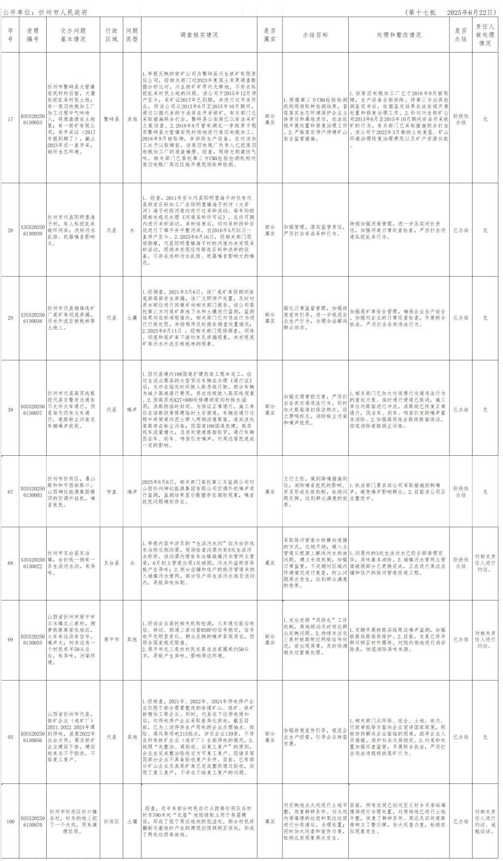 中央生態(tài)環(huán)境保護(hù)督察組群眾信訪舉報轉(zhuǎn)辦和邊督邊改公開情況一覽表(第十七批)