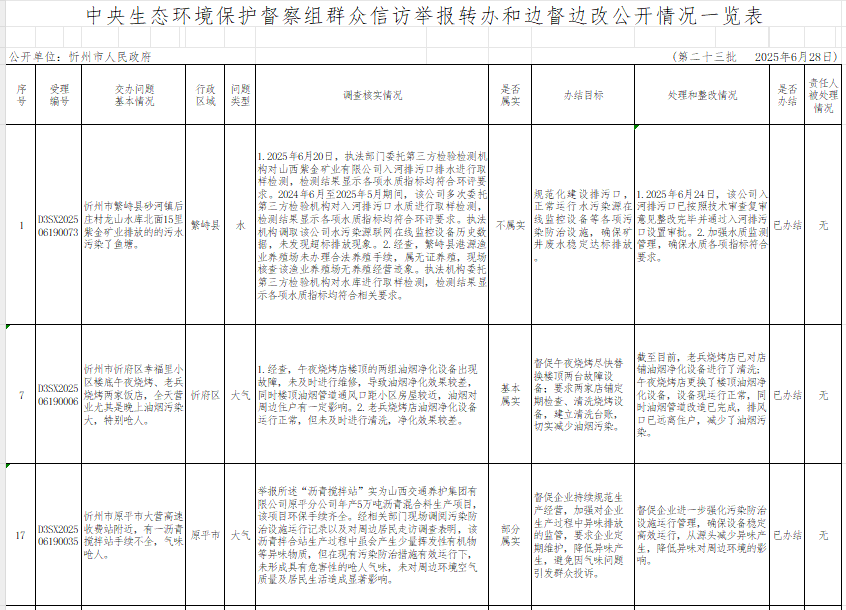 中央生態(tài)環(huán)境保護(hù)督察組群眾信訪舉報(bào)轉(zhuǎn)辦和邊督邊改公開情況一覽表(第二十三批)