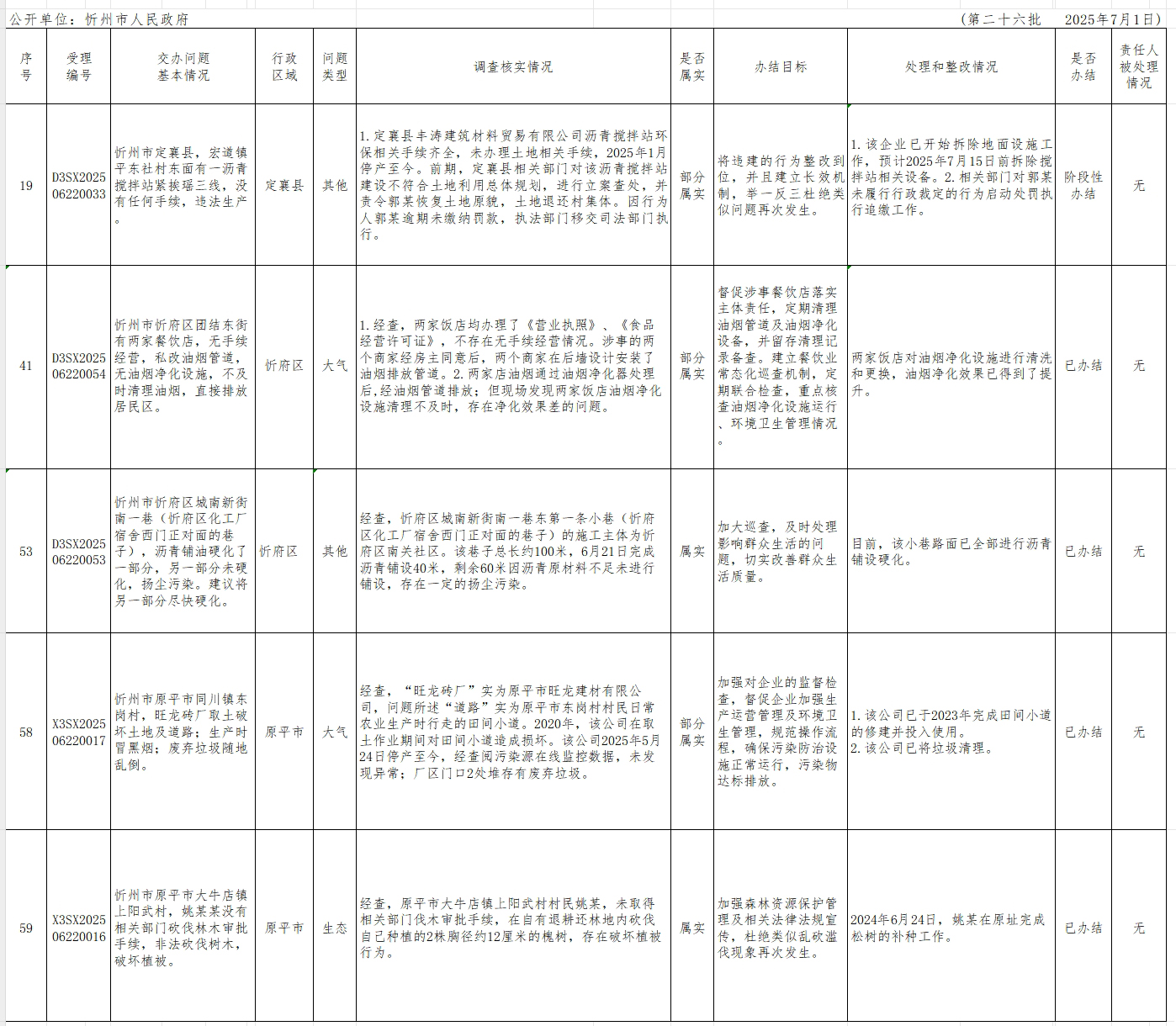 中央生態(tài)環(huán)境保護(hù)督察組群眾信訪(fǎng)舉報(bào)轉(zhuǎn)辦和邊督邊改公開(kāi)情況一覽表(第二十六批)