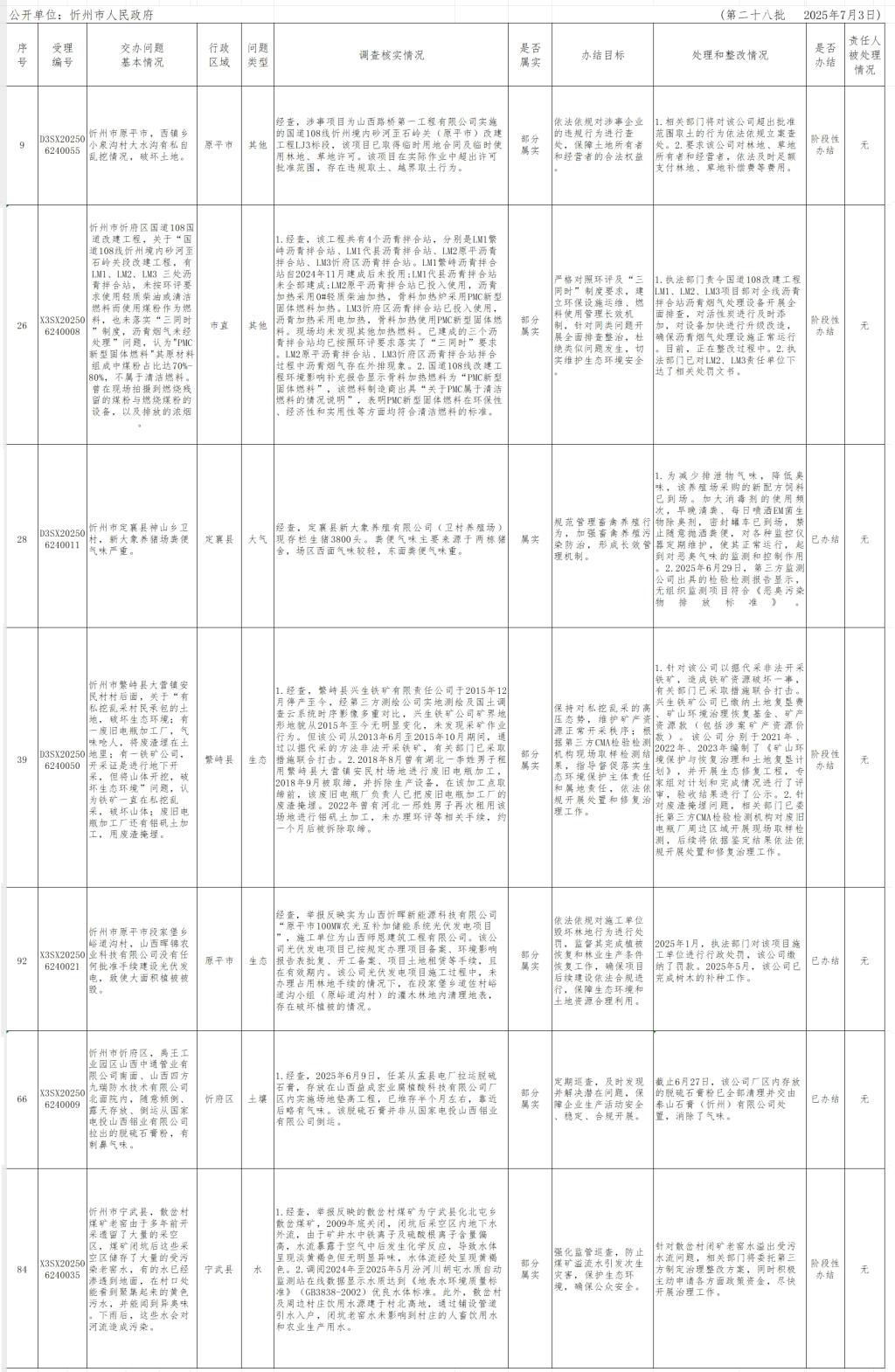 中央生態(tài)環(huán)境保護(hù)督察組群眾信訪舉報(bào)轉(zhuǎn)辦和邊督邊改公開(kāi)情況一覽表(第二十八批)