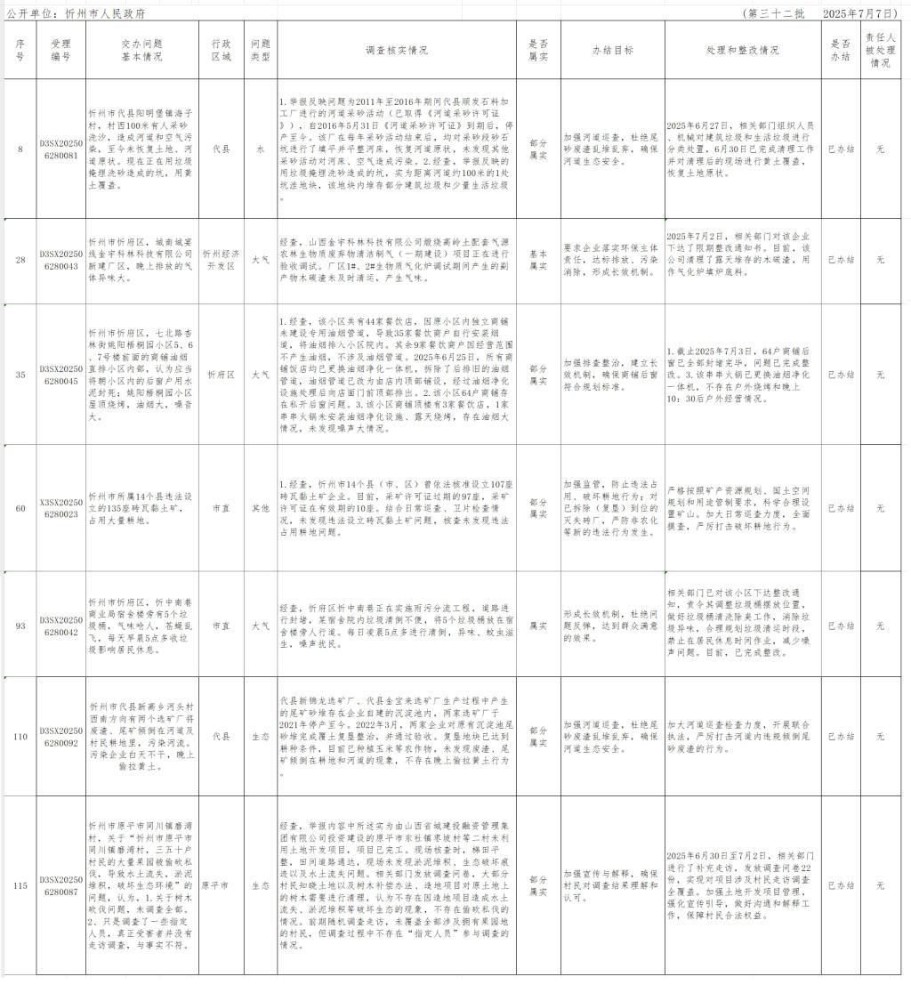 中央生態(tài)環(huán)境保護督察組群眾信訪舉報轉辦和邊督邊改公開情況一覽表(第三十二批)