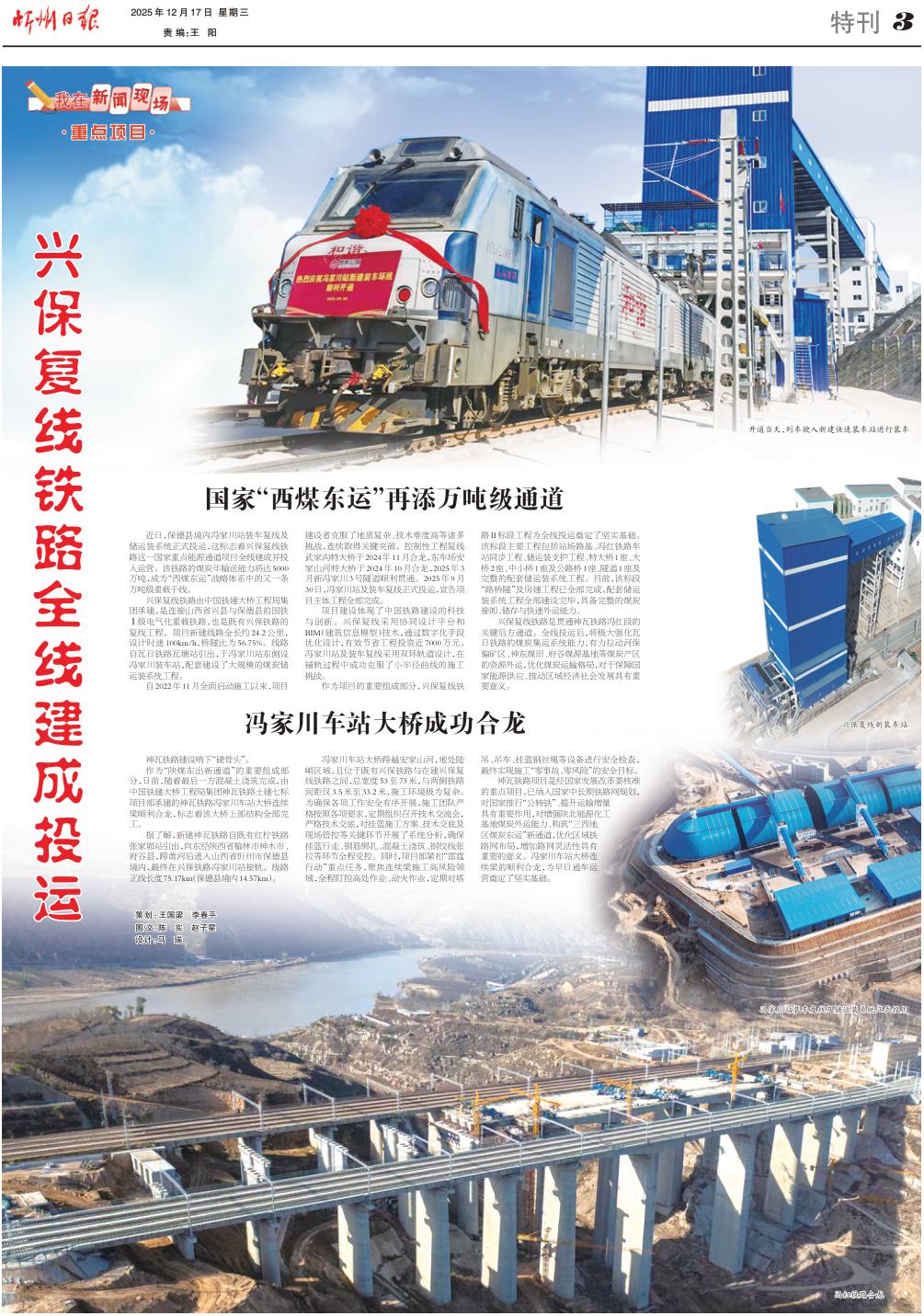 近日,保德縣境內馮家川站裝車復線及儲運裝系統正式投運,這標志著興保復線鐵路這一國家重點能源通道項目全線建成并投入運營。該鐵路的煤炭年輸送能力將達5000萬噸,成為“西煤東運”戰(zhàn)略體系中的又一條萬噸級重載干線。