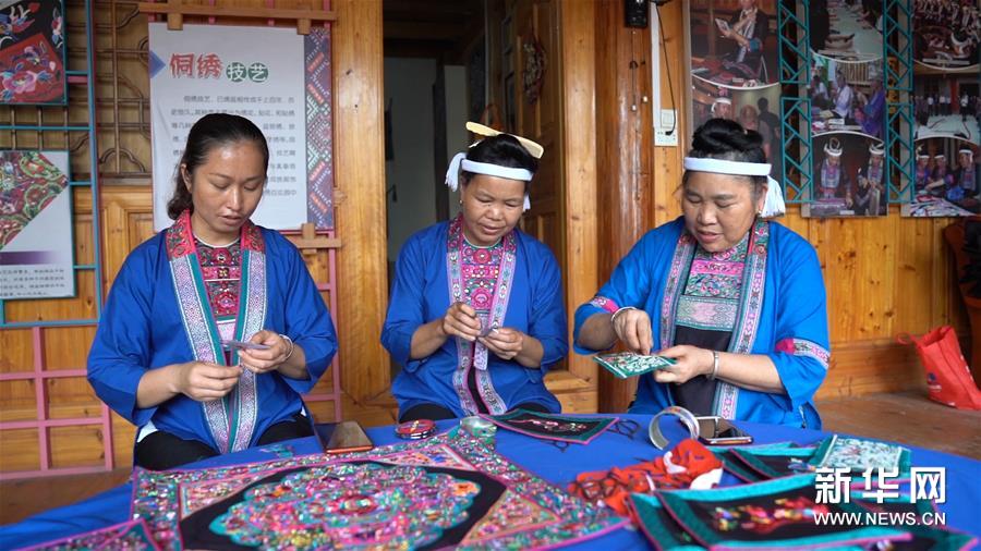 “最開(kāi)始培訓(xùn)繡娘的時(shí)候,沒(méi)有工資發(fā),只能在家打油茶招待人家,這幾年訂單多了,政府也支持,大家靠侗繡也能賺錢了?!睏钐鹫f(shuō),如今,一套侗族服飾甚至可以賣到七八千元;她們開(kāi)發(fā)的耳釘、手工包等侗繡工藝品,很受香港等許多地方客人歡迎。