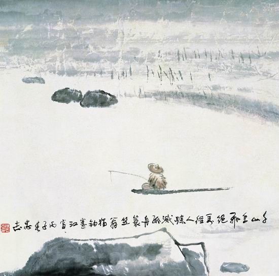 陳忠志《獨(dú)釣寒江雪》。來(lái)自人民網(wǎng)書畫頻道“人民美術(shù)館”