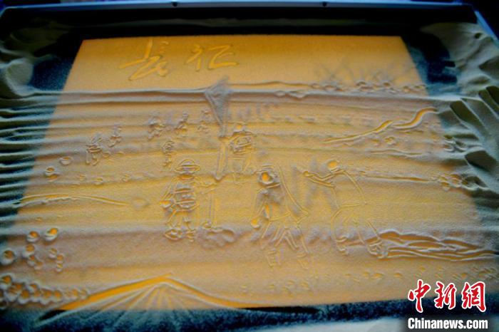 中新網(wǎng)長春7月5日電 (孫博妍)吉林動(dòng)畫學(xué)院畢業(yè)生滕琦昕,近日用沙畫的形式重現(xiàn)了紅軍長征奇跡,并將創(chuàng)作過程錄制成視頻上傳到了網(wǎng)絡(luò),獲得大量贊譽(yù)。記者5日在學(xué)校的工作室內(nèi)看到了滕琦昕創(chuàng)作的沙畫。