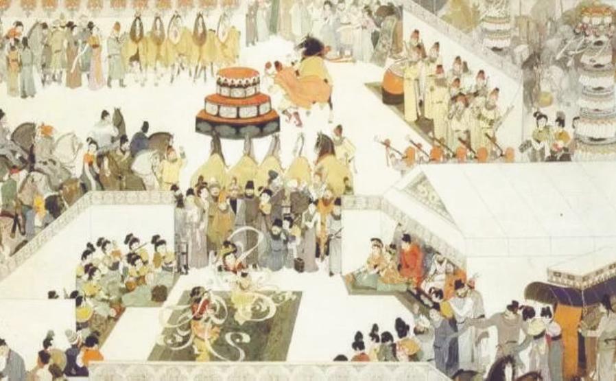 民間對生日節(jié)俗的定義,由下而上影響到皇室。南梁元帝“年少之時,每八月六日載誕之辰,常設齋講”,在每年生日時會以組織僧人念經(jīng)誦佛的形式慶生,感激母親忍受巨大痛苦甚至冒著生命危險生子之恩。然而,“自阮修容(即元帝生母)薨歿之后,此事亦絕”,母親去世后,則不再舉辦生日齋講。這個傳統(tǒng)一直保留到隋朝和唐朝初年,據(jù)唐代封演的《封氏聞見記·降誕》載:“近代風俗,人子在膝下,每生日有酒食之會?!备改附≡跁r,子女每年生日都會邀請親朋好友聚餐慶祝;孤露之后,即父母不在人世,便“不宜以此日為歡會”。