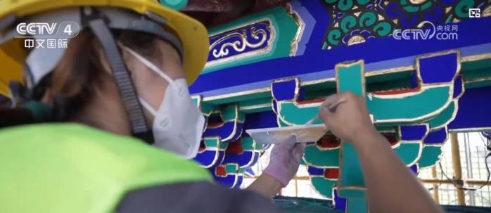 如今的北京中軸線構(gòu)建起了現(xiàn)代都市與歷史空間巧妙融合的城市景觀。北京中軸線上的前門五牌樓曾因常年風(fēng)吹日曬,導(dǎo)致油飾層開裂、失去華彩。2022年,古建油飾彩畫專家堅(jiān)持古法彩繪,對(duì)前門五牌樓進(jìn)行了翻新,令牌樓呈現(xiàn)出恢弘大氣的視覺效果。作為世界遺產(chǎn)的北京中軸線同時(shí)也是百姓日常工作生活的場(chǎng)景,這讓北京中軸線成為了“活遺產(chǎn)”。而在北京中軸線的最南端,重新復(fù)建的永定門如今已經(jīng)成為了百姓休閑和游客打卡的好去處。
