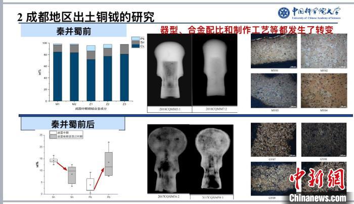 羅武干介紹說(shuō),此前罕見(jiàn)從銅冶金考古視角對(duì)秦并蜀進(jìn)行解讀工作。他們這次利用類型學(xué)、X光成像、合金成分及金相顯微組織、微量元素、鉛同位素等分析方法對(duì)秦并蜀前后蜀地銅鍪與銅鉞兩類青銅器進(jìn)行分析,研究發(fā)現(xiàn)秦并蜀后,蜀地銅鉞與銅鍪的器型、合金技術(shù)、制作工藝及銅、鉛礦源均發(fā)生一定程度的變化。