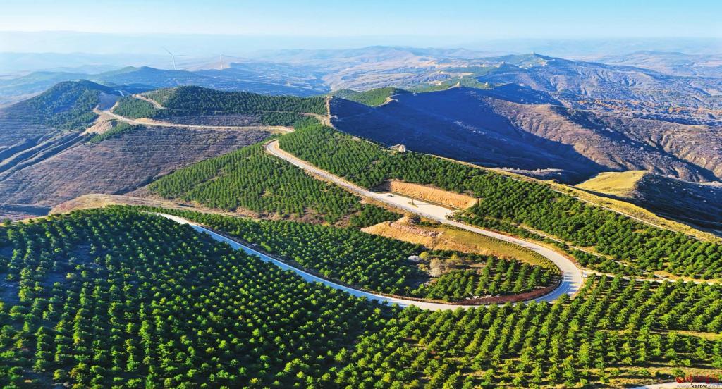 邊塞重地,長年征戰(zhàn),風(fēng)沙肆虐,溝壑縱橫。特殊的地理位置和惡劣的氣候條件,導(dǎo)致偏關(guān)的原始植被幾近絕跡。偏關(guān)人一年中有半年在植樹造林,人工搬苗,人工運(yùn)水,從山下到山上,再從山上到山下,來回往返,汗水淌過春夏秋冬,足跡踏遍山嶺圪梁。為減少水土流失,他們在山坡上挖交錯(cuò)排列的魚鱗坑,以貯存“貴如油”的雨水,為油松提供有限的囊盡天地之饋贈(zèng)的水肥。淺淺的土層,種不下高頭大樹,僅能讓幾十厘米的油松保持直立。偏關(guān)人誓將“荒山”變“綠山”,“換書記不換主意,換縣長不換主張”“一任接著一任干,一級(jí)干給一級(jí)看”……以堅(jiān)韌之力重塑山河、治理生態(tài),以愚公之力見縫插綠、逢山播綠,以“饅頭加镢頭、燴菜加會(huì)戰(zhàn)”的不屈精神,年年歲歲,綠色接力,將偏關(guān)打造成全省生態(tài)建設(shè)紅旗縣,黃河流域生態(tài)文明建設(shè)先進(jìn)縣,在不毛之地寫下綠色詩行,筑起綠色長城。