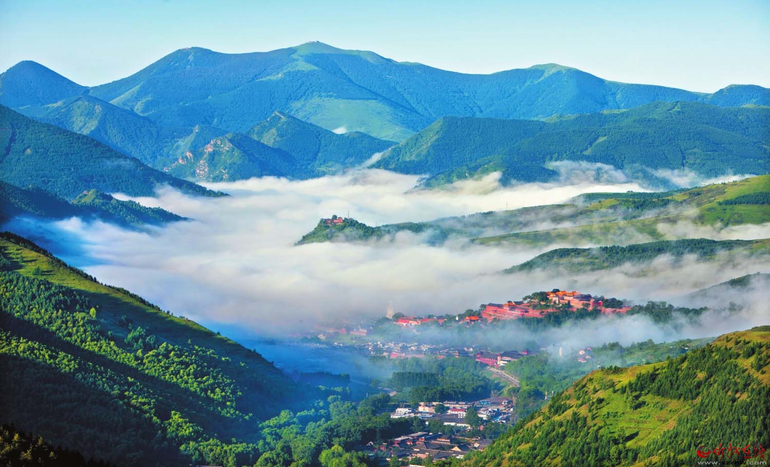 五臺山菩薩頂 張存良 攝 自東漢永平十一年(公元68年)興建第一座佛寺以來,五臺山的佛教文化延續(xù)了近兩千年,戰(zhàn)亂、變革均沒能影響這里香火的傳承。這里不僅是中國四大佛教名山之首,還是全世界的文殊信仰中心。在晉北并不富裕的山區(qū)里,為何能出現(xiàn)如此燦爛的佛教文化?究其原因,除了歷代佛教徒的苦心經(jīng)營外,還與五臺山自身的地理位置和地形、地貌、氣候等特點有著很大關(guān)系。五臺山與印度靈鷲山的地形十分相似,又地處內(nèi)蒙古、河北、山西交界,交通便利,其清涼的氣候、奇特的地形更吸引了八方來客。可以說,是五臺山的自然環(huán)境留住了最初來此云游的僧人,也是這里的一草一木留住了歷代來此朝圣者的心靈。