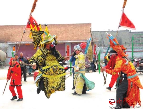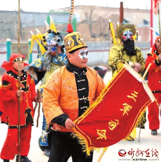 把古代戰(zhàn)爭場面演練成劇,表現(xiàn)多為騎兵對戰(zhàn),故稱為大馬社火。今年春節(jié)期間,定襄北社西村大馬社火被錄制成視頻上傳后,成為最受歡迎的鬧紅火視頻之一,人們紛紛轉(zhuǎn)載,贊不絕口。剛剛過去的元宵節(jié),大馬社火也是定襄鬧元宵不可或缺的重頭戲,北社西村眾多村民自發(fā)組織起來耍社火,表達祈福驅(qū)邪,對風(fēng)調(diào)雨順、豐產(chǎn)增收的祈愿,形成了一道獨特的傳統(tǒng)民間文藝風(fēng)景,還吸引了山西省民間文藝家協(xié)會專家現(xiàn)場指導(dǎo),舉行了民間民俗文化調(diào)研座談會。