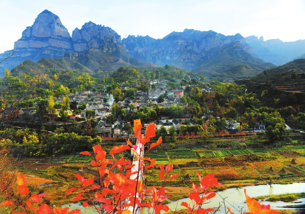 秋天的南莊是一個(gè)多彩的海洋。黃櫨和椿樹(shù)的紅葉像晚霞一樣映紅了山崖與河谷;燈籠一樣的金黃色柿子色澤誘人,掛在高高的柿樹(shù)上;依舊翠綠的花椒樹(shù)枝頭,一簇簇鮮紅的花椒若隱若現(xiàn);婆娑的黑棗樹(shù)上星星點(diǎn)點(diǎn),長(zhǎng)滿褐色的果實(shí),沉甸甸的,壓彎了樹(shù)梢。