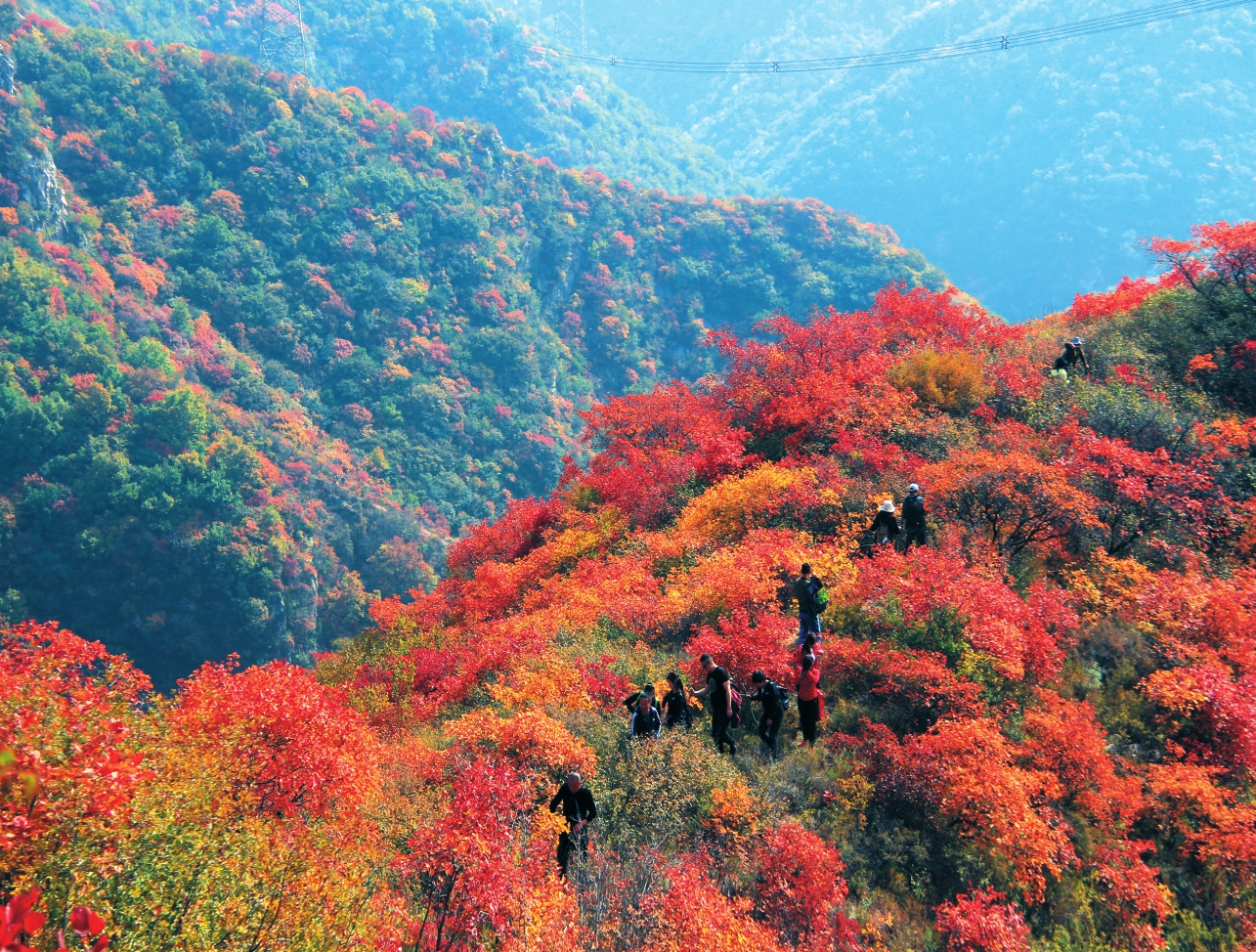 紅葉谷是一條長(zhǎng)達(dá)十幾公里的狹長(zhǎng)山谷,開(kāi)闊處大如庭院,狹窄處頭頂只露一線天空。每到秋季,紅葉樹(shù)仿佛約好似的于山谷間競(jìng)相爭(zhēng)艷,紅色或淺或深,紅綠相間、紅黃浸染,一片紅葉繽紛的世界。